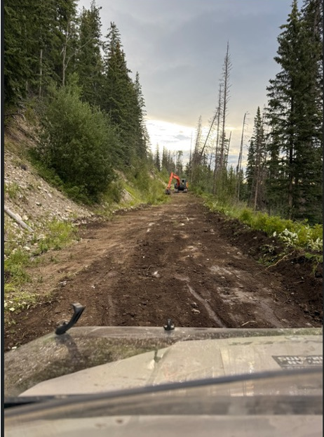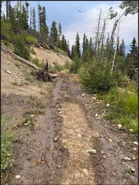 The group was able to re establish the trail from the first – second river crossing back to original design. Ensuring all drainage pathways were cleaned and re sloped. Culverts all cleaned and erosion rocks in places. Trail erosion repaired and all large boulders removed.